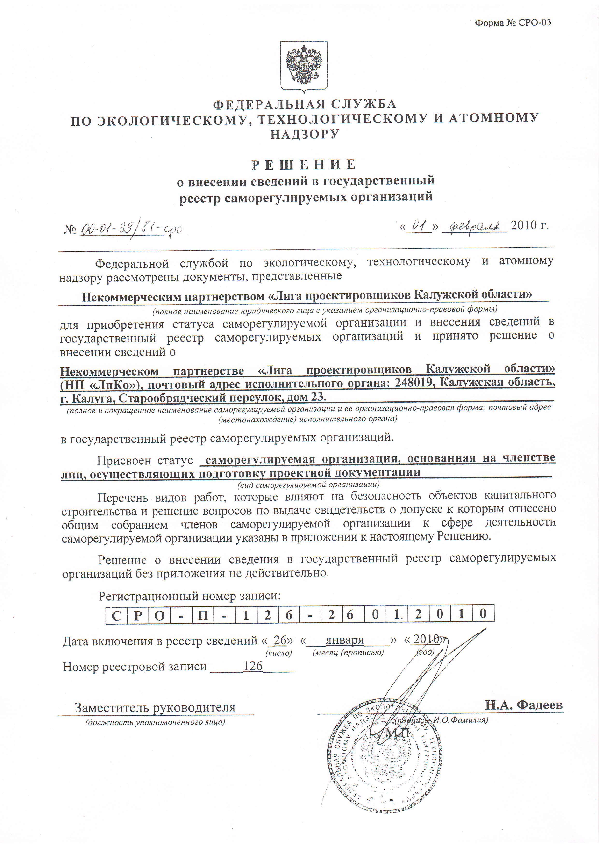 Решение о внесении сведений в государственный реестр саморегулируемых организаций
